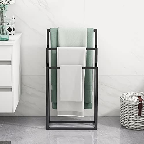 BOFENG 3 Tiers Black Metal Towel Rack Chrome Tall Industrial Modern Freestanding Towel Holder for Bathroom Accessories Organizer for Bath Storage & Hand Towels,Washcloths,Next to Tub or Shower