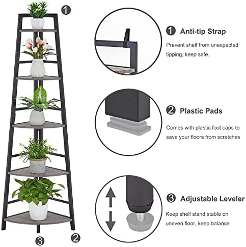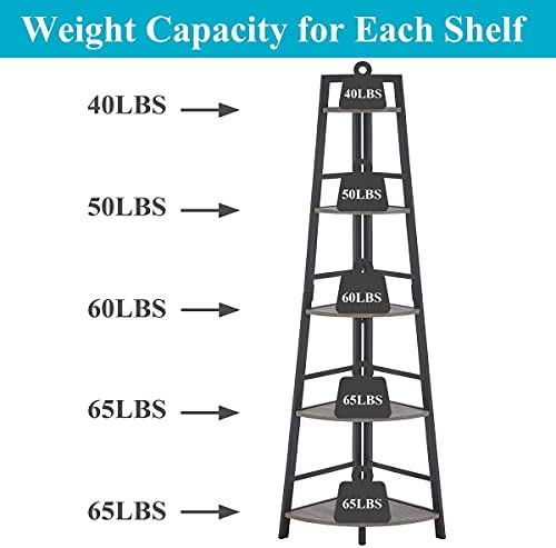 Material & Weight Capacity: Shelves made of high-quality MDF, and heavy-duty metal frame provides reinforcement and stability. Each shelf can hold up to 65 lbs easily. With this Tall 5 tier corner bookcase, you can make use of each corner in your house to display your favorite books, plants, decorations or any heavy stuff.