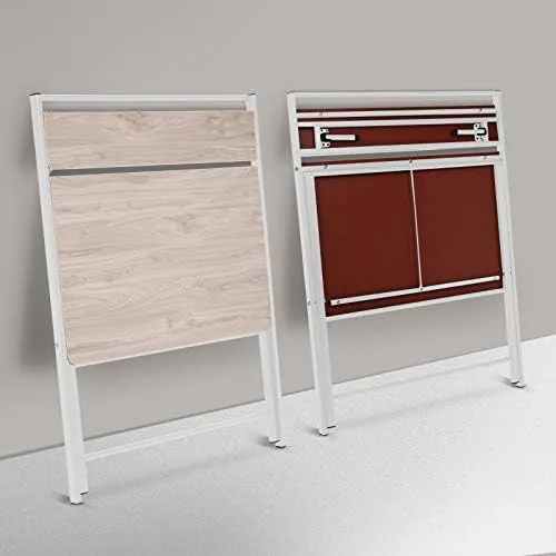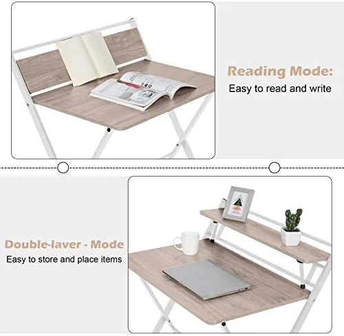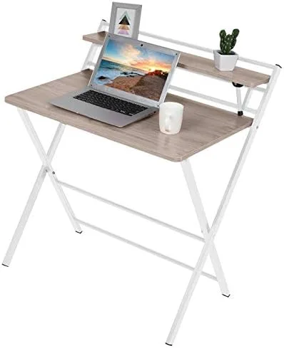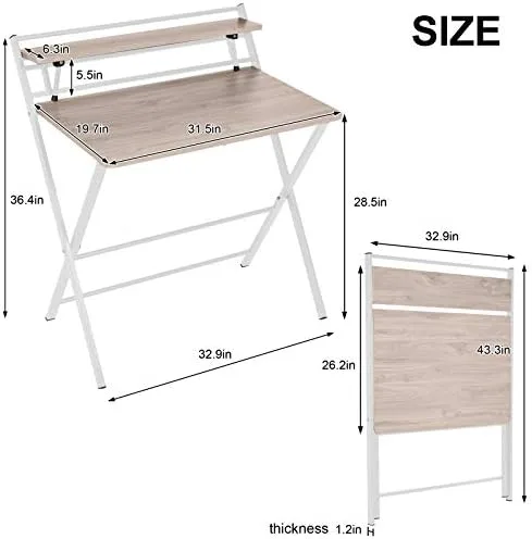This table is designed with a shelf on the table top, which provides a huge storage space for your books, plants, small things, etc., and maximizes your space. The small desk can be folded in the corner when not in use for your storage and transportation. X-shaped metal legs enhance the stability of the desk. The folding computer desk has a simples and elegant design and is very practical. It is the perfect furniture for decorating a family study or workplace. No need to assembled, just take it out and work immediately