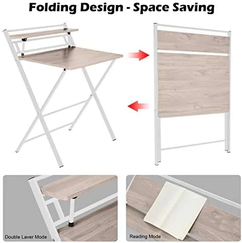 Bookcase Ladder Desk Folding Desk 2-layer Small Desk With Shelf, Foldable Table Without Assembly Computer Desk Study Table Roll Top Computer Desk 5301 N