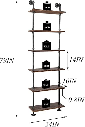 BOSURU Industrial Pipe Shelves Rustic Wood Ladder Bookshelf Wall Mounted Shelf for Living Room Decor and Storage