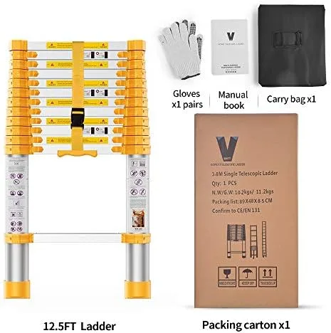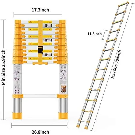 【Height & Material】The MAX height is 12.5ft and MIN is 3ft,that you can extends to different height you need. This extendable ladder is crafted from superior aluminum alloy.