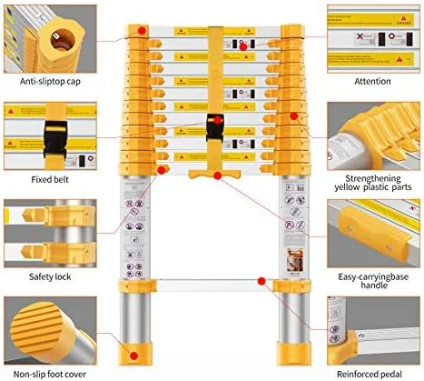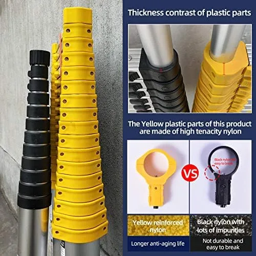 【Independent Button Adjustment】 : Each section of the extension ladder is designed with an independent locking mechanism, ensuring that you can adjust step by step to reach the height you need.