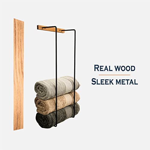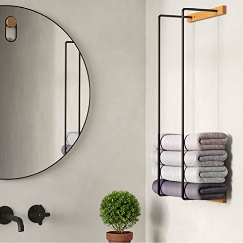 BridgeShine Bath Towel Rack,Wall Mounted Black Metal Hand Rolled Towels Holder Hanger Bathroom Organizer and Storage Washcloths Bathrobe Blanket Shelf for Cloakroom