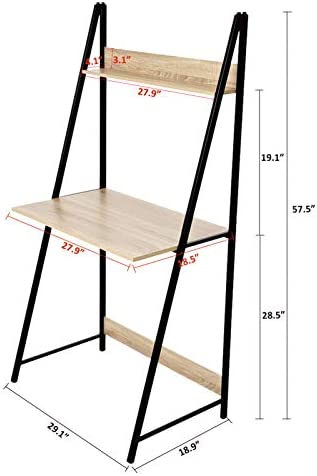 C-Hopetree Ladder Desk with Shelf – Student Study Table – Black Metal Frame