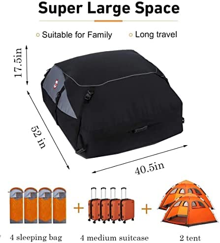 Car Roof Bag Cargo Carrier, 21 Cubic Feet Waterproof Rooftop Luggage Bag Vehicle Softshell Carriers, Anti-Tear 1000D PVC with 8 Reinforced Straps + Storage Bag for All Vehicle with or Without Rack