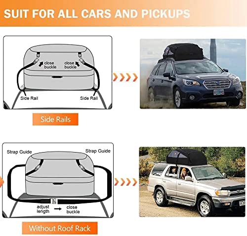 【EASY TO INSTALL】:Adakiit rooftop cargo carrier fits for any car, truck, or SUV. If there is not roof side rails on your car, it can be quickly and easily installed to roof rack in minutes with 8 Reinforced Straps.