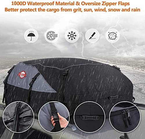 【UPGRADED WATERPROOF ZIP】While other rooftop carrier bags let in water through the normal zipper, we’ve upgraded it to a waterproof zipper and fitted it with a widened zipper flap that helps keep your items 100% dry.