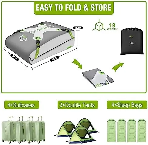 Car Rooftop Cargo Carrier Bag 19 Cubic Feet,2023 Upgraded Non-Rip 100% Waterproof Roof Bag Luggage Storage Carriers for All Vehicles with/Without Rack,Including 8 Reinforced Straps+ 4 Door Hooks
