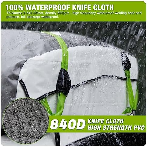 【IPX66 RATING WATERPROOF】Our car rooftop cargo carrier bag is made from 840D knife scraping cloth, With a thickness of 0.052mm and a density of 600g/m²,it boasts excellent durability and wear resistance.which employ high-frequency welding technology throughout the bag,100% waterproof!Notably, the material meets the latest European 6P environmental standards.