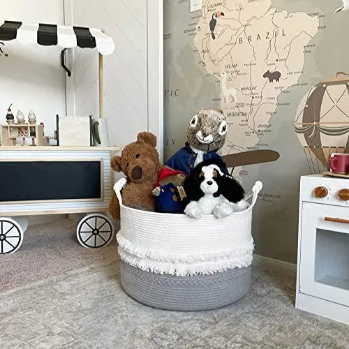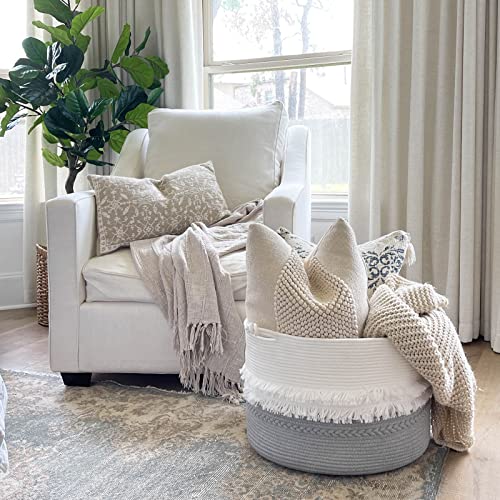 CherryNow Extra Large Rope Basket for Toys, Grey Blanket Basket for Living Room, Entryway, Nursery Laundry Basket for Clothes, 22 x 14 inches, 83L