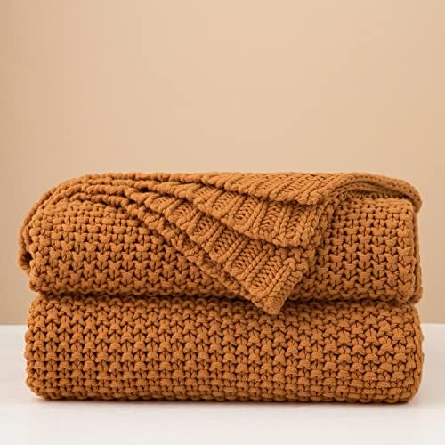 Chunky Cable Knit Throw Blanket Lightweight Burnt Orange 100% Organic Cotton Blanket for Sofa Couch Bed Baby Nursery, Rustic Shabby Chic Modern Farmhouse, 51” x 63” Give Laundering Bag