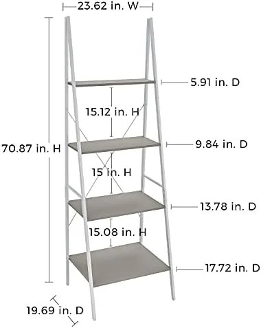 Blending retro and modern design elements, this attractive ladder shelf makes a nice impression in any space. Storing and organizing your books is not a hassle any more. Available in multiple neutral finishes that gives it a stunning appearance, complementing any home décor. Four spacious shelves that can accommodate books, frames, or collectibles. It has a sleek, slender design that adds creativity to the contemporary or modern style home décor.