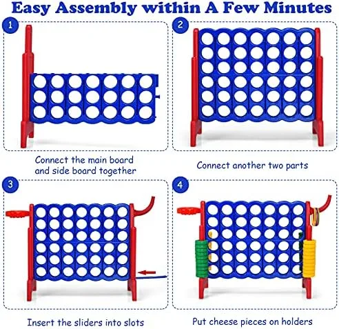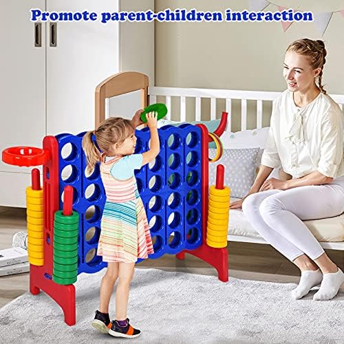 šćPerfect Gift for Kidsć: Our colorful giant game toy is the perfect gift for children. Whether itās holiday or birthday, this 4-in-a-row game set is always a surprise and will keep them entertained for hours. The rules are very simple and children can learn them quickly. Besides, through this game, children’s motor skills, hand-eye coordination and cognitive skills can be greatly improved.