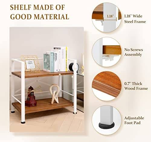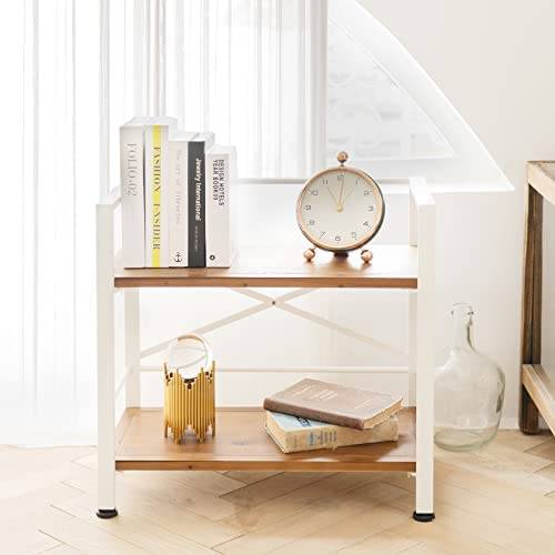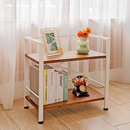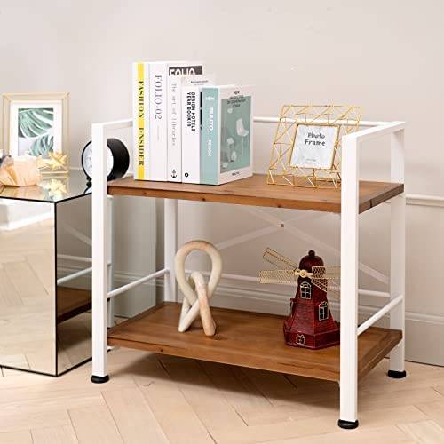 Crofy 2 Tier White Bookshelf, Real Wood Bookshelf Simply Assembled in 10 Minutes, Metal Book Shelf for Storage, Bookcase for Office Organization and Storage, 12.6 D x 23.62 W x 22.83 H Inches