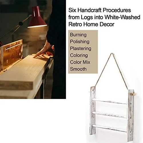 【FARMHOUSE DÉCOR】 – With a whitewashed vintage look created by six hand-made steps, this shelf can be a farmhouse vintage decoration as well as a towel rack. It’s shabby chic whitewashed style could add rustic look to your room