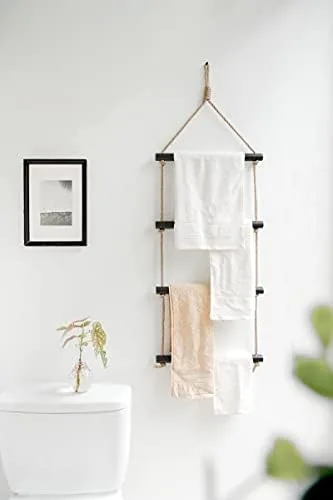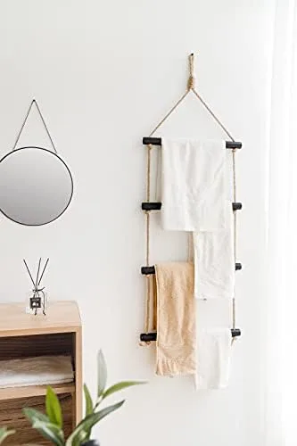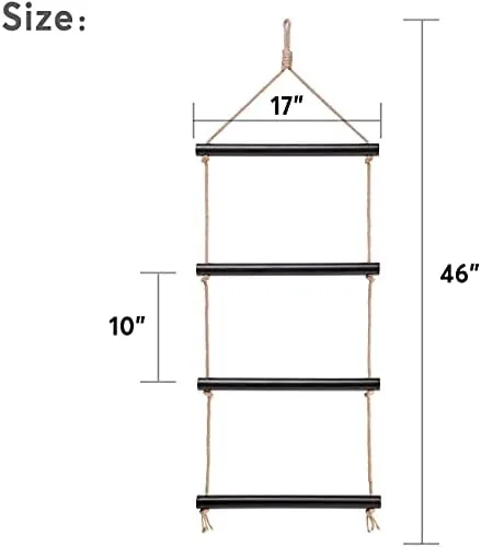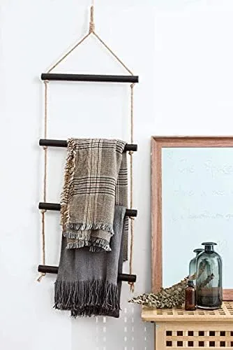 Versatile blanket ladder is perfect for storing and displaying blankets, towels, scarves ,beach towels ,shawls,magazines, newspapers,clothes and more.Create hanging storage in your livingroom, bedroom,bathroom or laundry room.(The blanket ladder can holds up to 22 lbs.)