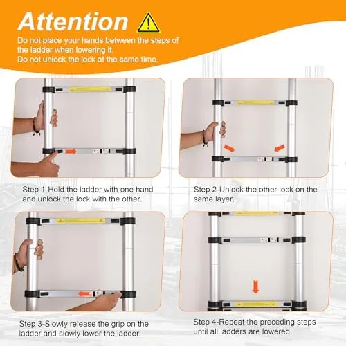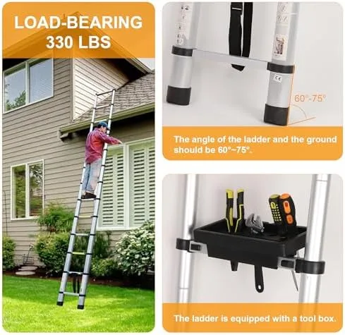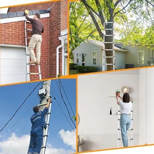【Versatility, applicability】You can use our ladder, our ladder is convenient enough, if your house needs to be repainted and decorated, you can use this ladder. Or when the light bulb in your house is broken, you can also use our ladder, so that you can easily replace the light bulb. Or if you want to go up high and don’t have a proper staircase, you can use our extension ladder so that you can easily reach the high place. Suitable for attic, RV, home, house maintenance, wooden house, street lights, high walls and so on.