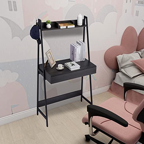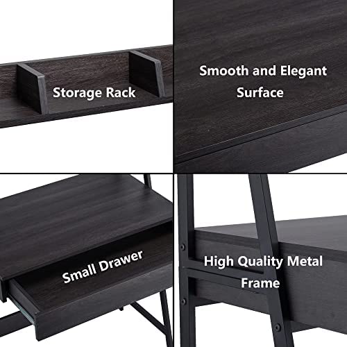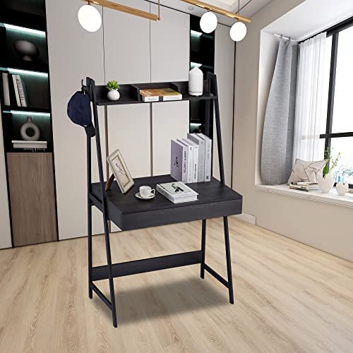 DEILALY 2 Tier Computer Desk Escritorio para Computadora Desk Shelf Study Desk with Drawer Gaming Desk Study Table W31.5 PC Small Desk Metal Frame Home Office Bedroom Studio Dormitory Appartment