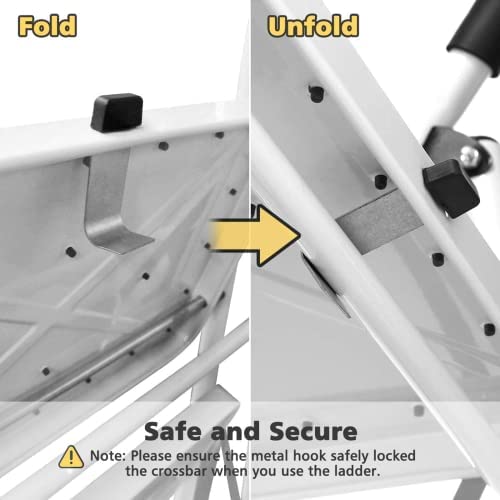 【 Lightweight & Portable 】- The space-saving lightweight folding ladder is extremely light and easy to open and close. It can be folded into about one-third. Easy to transport and carry, can be put in a narrow space when not in use