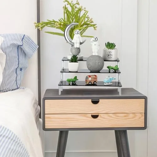 Various usages: not only can the clear tiered display shelf be applied to store food, but also be applied as a rack to display your handmade items or items like your collections; You can use it in the kitchen as a condiment rack, in the study as a display rack, or even in the bathroom as a perfume rack to display your perfume