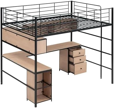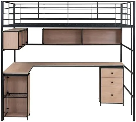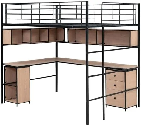[Maximized Space]The loft bed has shelves and storage drawers,bookcases to lay out whatever you want including the lamp, books, toys and so on.And the shelves are just besides the desk, it is easy for you to access anything you need.
