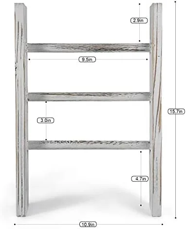 Decorate your home in a rustic country style with this unique towel storage ladder. These shelves take up little space, lightweight, well made, and distressed just the right amount. Looks awesome and goes well with rustic farmhouse decor. and can be used to organize or bathroom and kitchen. The storage ladder contains 3 shelves for storage of towels, toiletries, or other supplies.