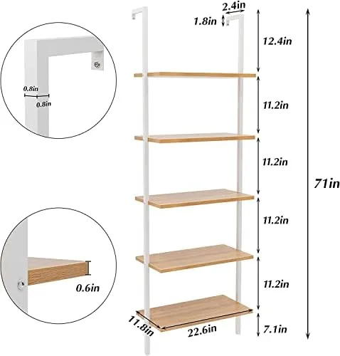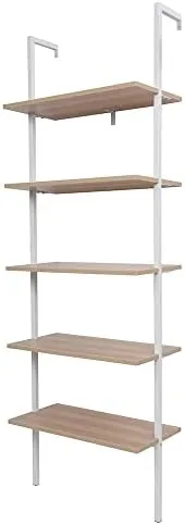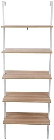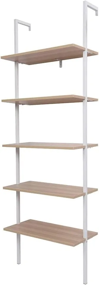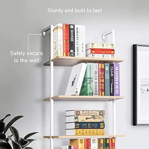 Revamp your space and organize your belongings with the 5-Tier Open Wall Mount Ladder Bookshelf. It is the ideal choice for those seeking a sleek, versatile, and functional storage solution that complements any room decor.