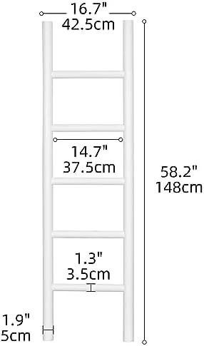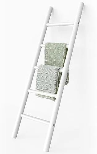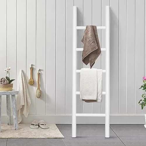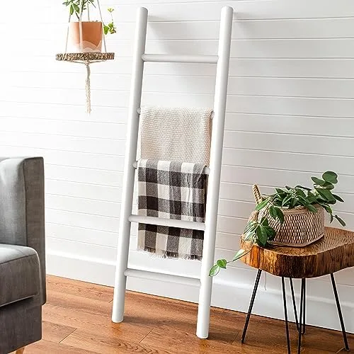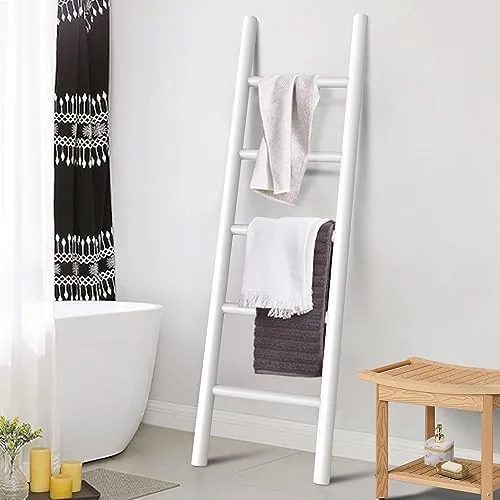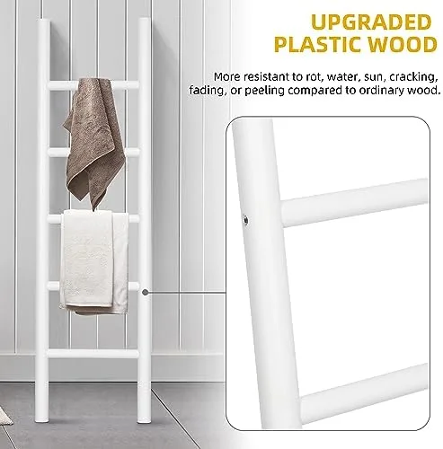 DWVO 5-Tier Poly Lumber Wall Leaning Blanket Ladders Quilt Towel Display Rack Shelf Holder,Hips Water-Resistant Rack Rustic Farmhouse(White)