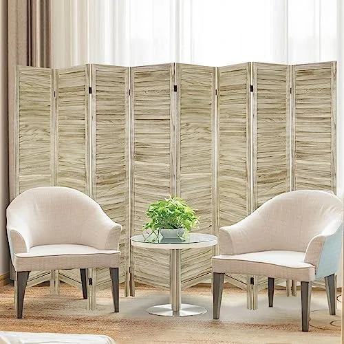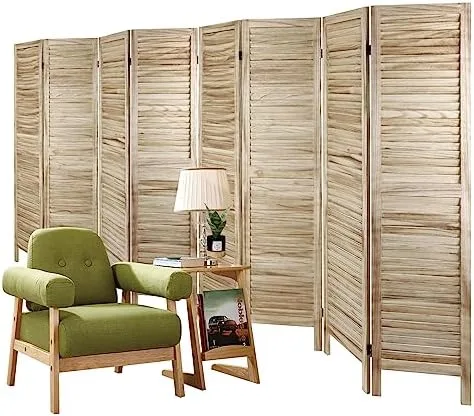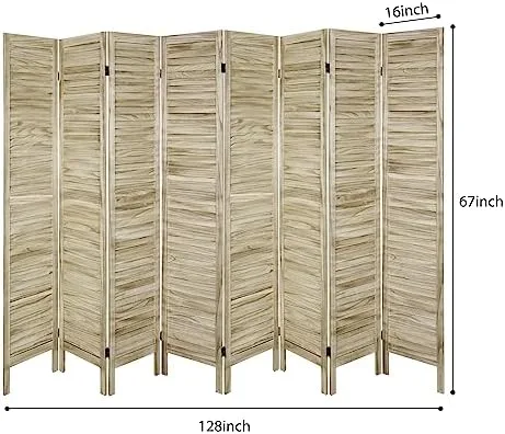 ECOMEX 8 Panel Room Divider, Folding Privacy Screens Room Divider, Wooden Room Screen Divider Freestanding, Partition Divider for Room Separation, for Home Office, Bedroom, Natural