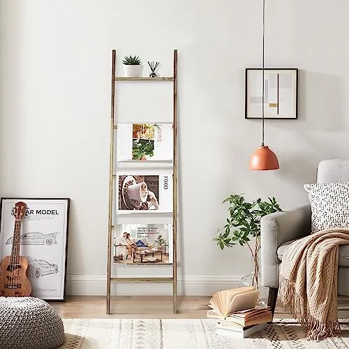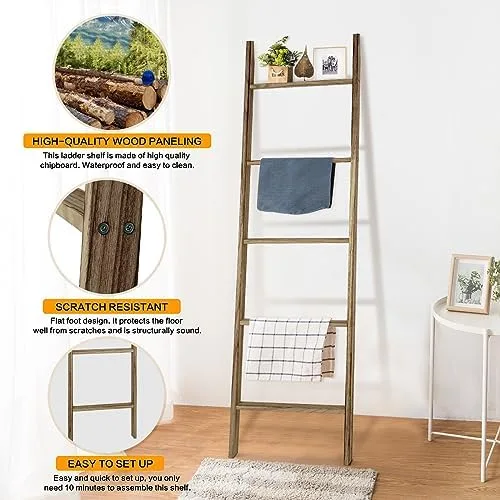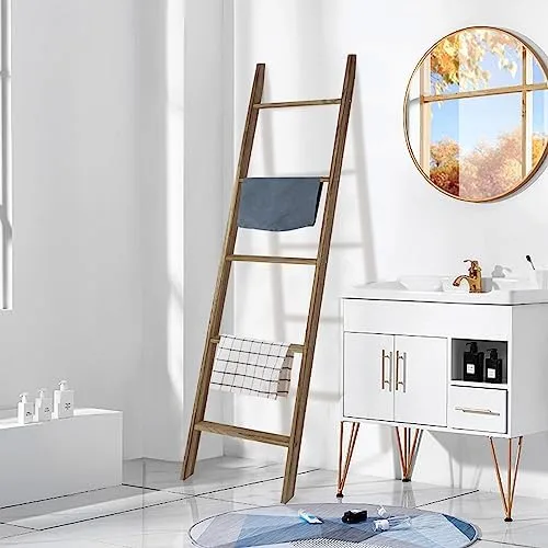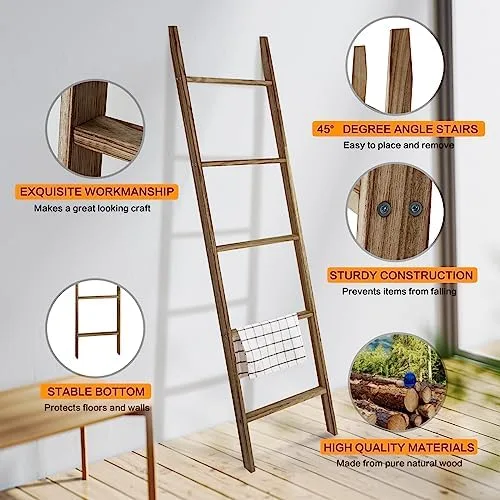 【Rationalize Space】:The design of these against the wall blanket ladders is ideal for you. The top of the blanket holder can hold small succulents and flowers. The middle of the blanket rack can hang blankets, towels, bath towels and more. Convenient to display your favorite fabrics without taking up too much floor space.