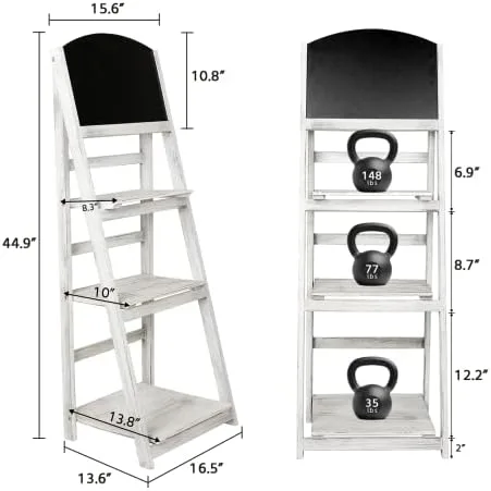 🌱BLACKBOARD WITH SHELVES: Blackboard is designed with 3 levels of shelves to meet both your decorative and storage needs. The 3 levels of open storage space can be adjusted to meet your different needs, displaying specialty items and food, displaying bright and colorful flowers and greenery, storing books or chalk