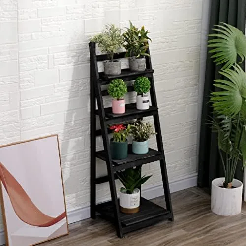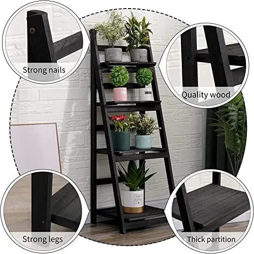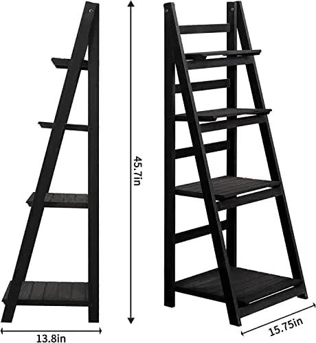 ✔【Multifunctional Ladder Shelf】- The black bookshelf comes with a unique rustic finish paired with a clean, modern silhouette. The carefully curated display is great for showcasing photo frames, succulents, art, small house plants, wicker baskets, and books. Create an eye catching display to compliment your unique space with the ECOMEXwooden bookshelf!