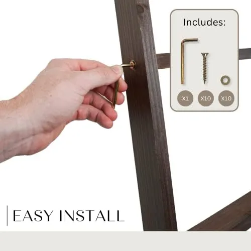 EKNAH Blanket Ladder – Holds 5+ Blankets – Living Room Decor – Blanket Rack – Store Quilts, Comforters, Bedspreads, Blankets & Throws – Blanket Storage for Living Room – Towel Rack – Dark Stained Wood
