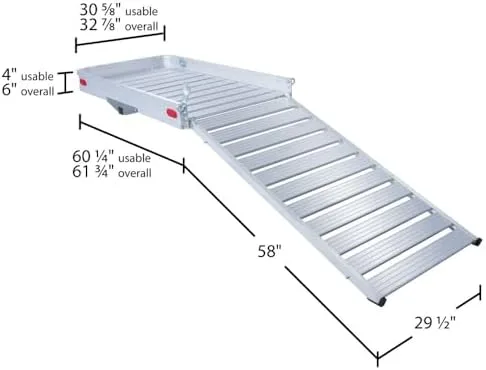 58″ L x 29.5″ W ramp folds flat into basket surface for convenient storage