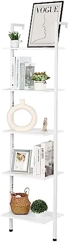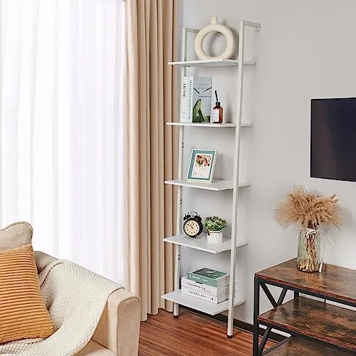 【Enhanced Stability】 The vertical design of our ladder shelf maximizes space-saving potential, while the top tubes can be securely attached to the wall for stability, the adjustable feet adapt to uneven ground surfaces, ensuring a stable display; once fixed in place, you can confidently showcase your plants, photo frames, books, candles, cups, and other cherished items without any concerns