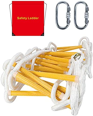 Emergency Fire Escape Ladder Flame Resistant Safety Rope Ladder with Hooks,Fast to Deploy & Easy to Use Compact & Easy to Store, Withstand Weight up to 2000 pounds