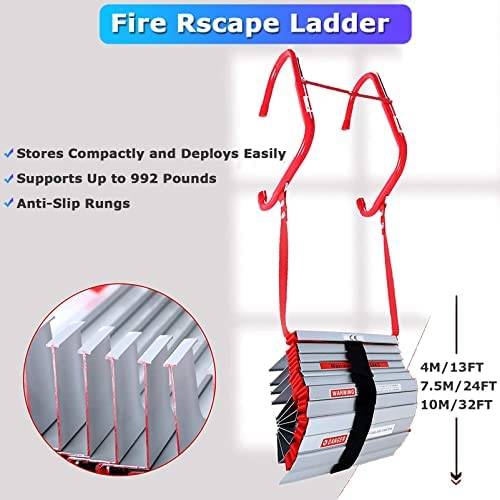 Emergency Rescue Ladder 2-6 Story Flame Resistant Safety Rope Ladder, Retractable Fire Escape Ladder with Anti-Slip Rungs, Fast to Deploy, for Adults Indoor or Outdoor Window Exit,32FT/10M