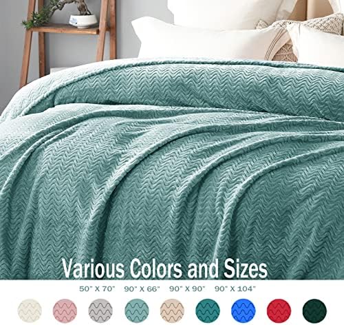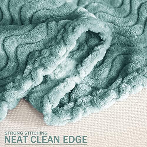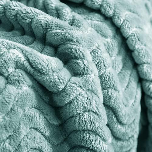 Exclusivo Mezcla Large Flannel Fleece Throw Blanket, 50×70 Inches Soft Jacquard Weave Wave Pattern Blanket for Couch, Cozy, Warm, Lightweight and Decorative Celadon Blanket