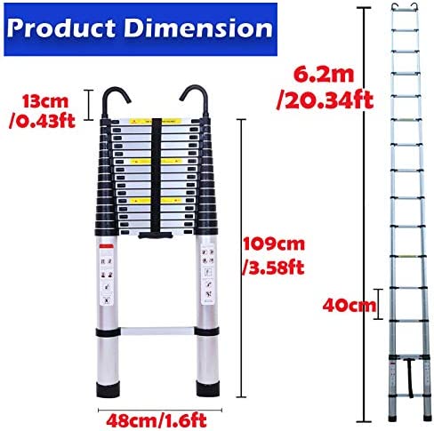 Multi-Purpose 6.2M 20ft Step Telescoping Extension Ladder with Detachable Hooks Anti-Slip Aluminum Telescoping Ladder 330 LB Load