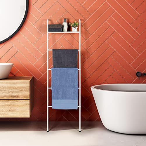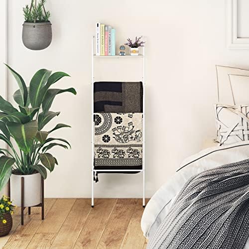 🏡 【DECORATIVE SPACE SAVER】Our blanket holder with a white frame and storage shelf. The towel ladder leans on the wall, making the most of the vertical space while creating a touch of rustic style to your living room, bedroom, and bathroom!