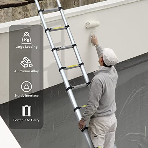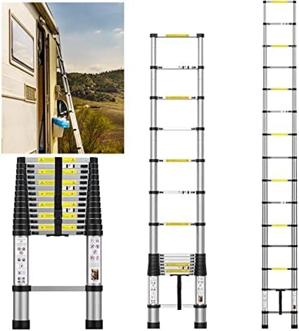FEETE 14.5FT Telescoping Ladder, Aluminum Lightweight Extension Ladder with Non-Slip Feet, Portable Attic Ladder, Heavy Duty RV Collapsible Ladder for RV, Household, Outdoor Working, 330lbs Capacity