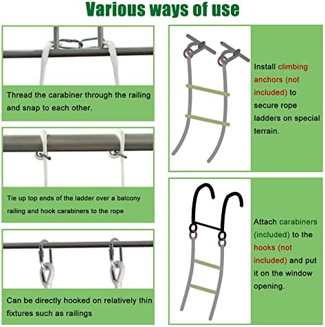 🏡【Widely Used】The rope ladder is equipped with two carabiners and fits most windows, balcony, railing can be used in escape, rescue, school, tree house, rock climbing, physical training, etc.