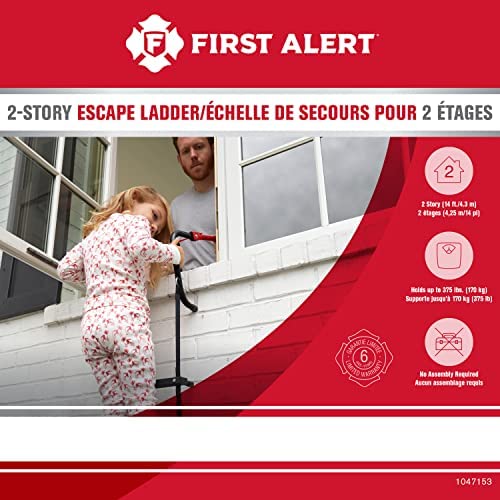 First Alert Two-Story Fire Escape Ladder, 14 Feet, Steel, Anti-Slip, Black