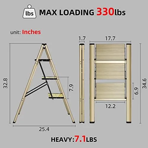 3★:【Sturdy and Dtable】 The step stool is made from high quality aircraft aluminium alloy for durability and rust resistance, while we have thickened the D-tube and tread for support, which has a maximum load bearing capacity of 330 LBS for your safety