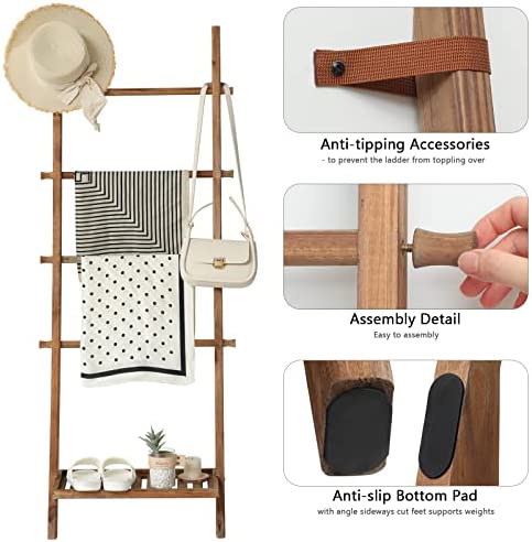 💯 [A HANDY 2 in 1] It can be displayed as an organizer or a decorative add-on for blankets and quilts as well. The bottom layer board could be carried plants, magazine, books, newspaper, etc, and the rungs’ extended connected portion could be a hanger for clothes, hat, handbag