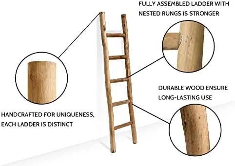 👍Crafted from high-quality natural wood: The blanket ladder is handcrafted by skilled artisans using premium quality wood, ensuring its sturdiness and durability. It is a perfect blend of traditional craftsmanship and modern design, making it a perfect fit for any decor. Note: each batch of raw material has color difference, please allow the final finished of the ladder you has different look from the photos you see on Amazon