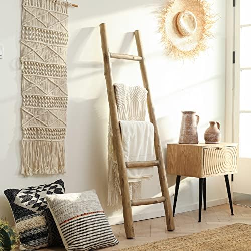 🆒Versatile and practical: This 5ft blanket ladder is not only a perfect decor piece but also a functional storage solution for your blankets, quilts, towels, and other textiles. You can keep it in your bedroom, living room, or even in the bathroom, making it an ideal addition to any farmhouse or rustic-style home