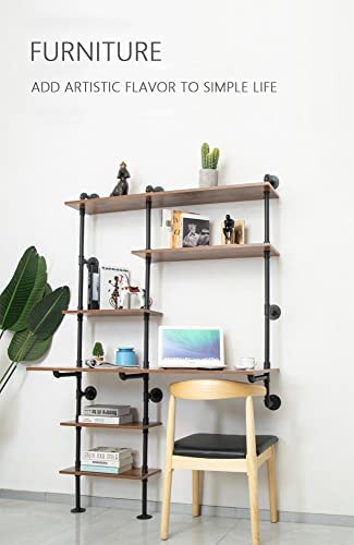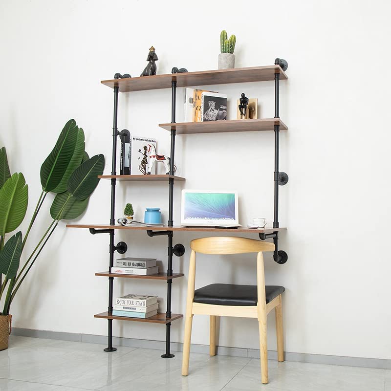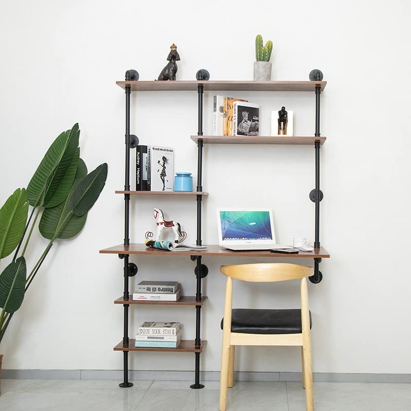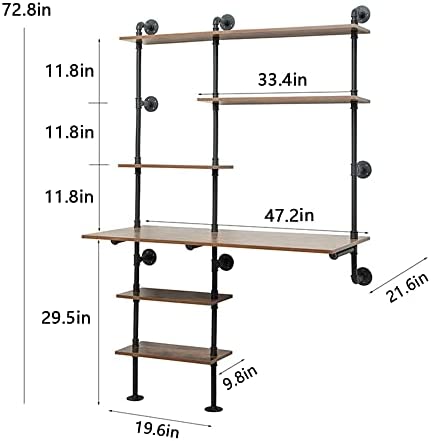 FUSHIAIPTC Industrial Wall Ladder Desk, 6-Shelf Floating Wall-Mounted Desk with Storage Shelves for Small Spaces Home Office (73x47x20)