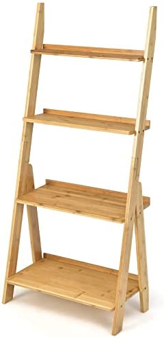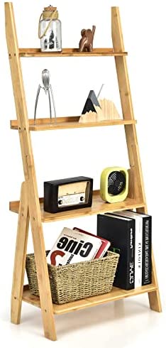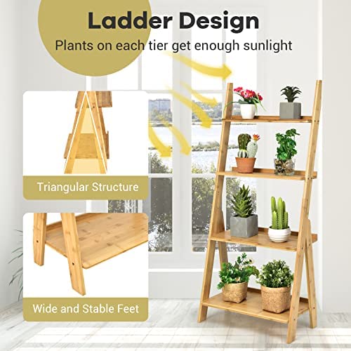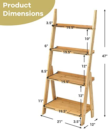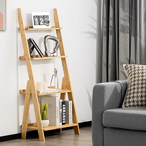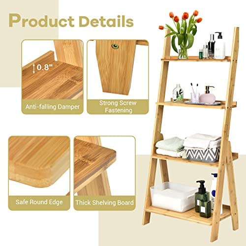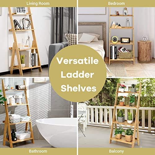 Giantex 4-Tier Bamboo Ladder Shelf, 21" x 12" x 47" Freestanding Display Leaning Storage Shelves, Ladder Bookshelf Organizer for Living Room, Bathroom, Kitchen, Study, Natural